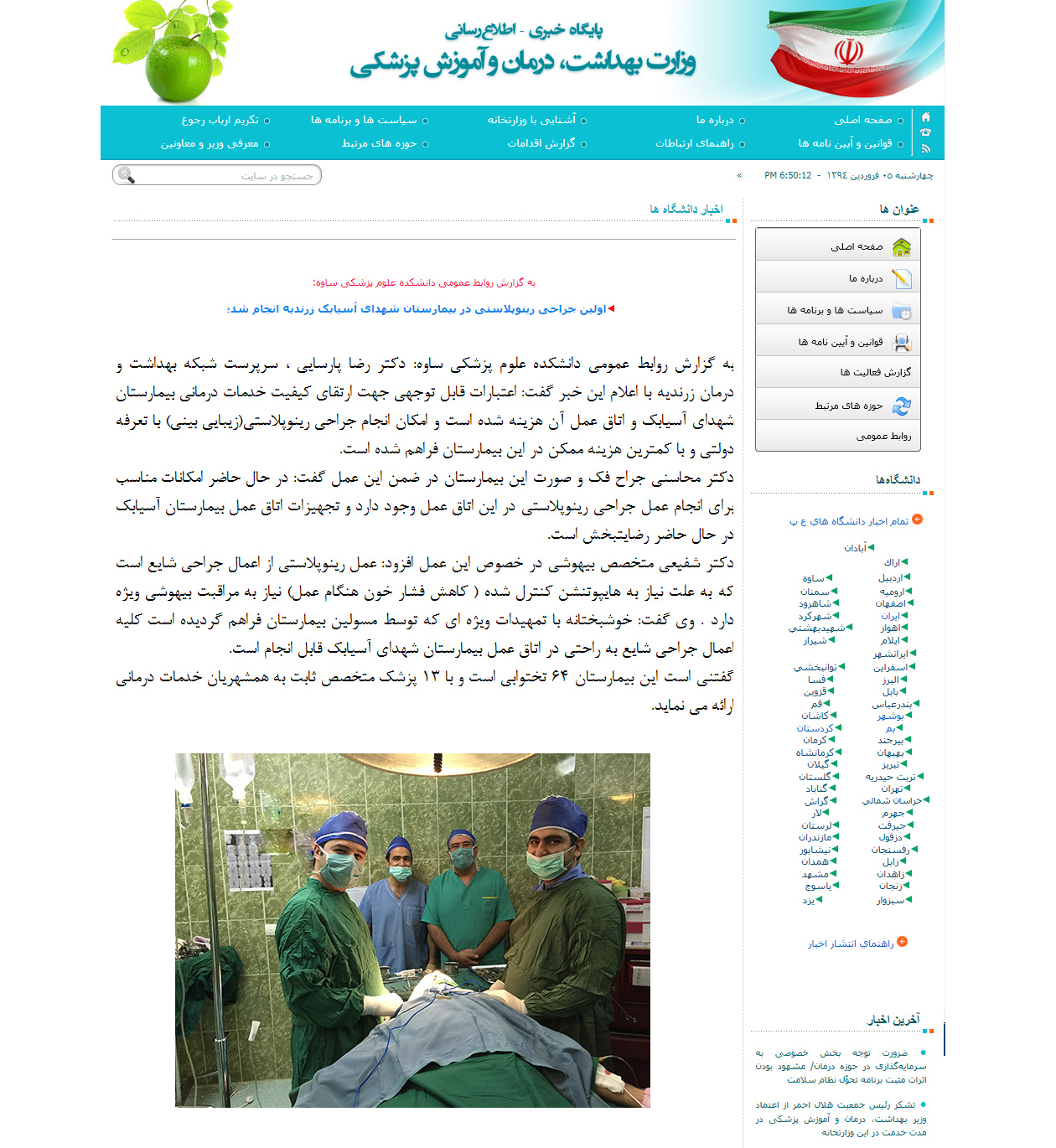 اولین جراحی زیبایی بینی به همت دکتر حمیدرضا محاسنی اقدم در جهت تجهیز مرکز جراحی بیمارستان آسیابک و ارائه درمانهای جراحی فک و صورت در این مرکز انجام گرفت.